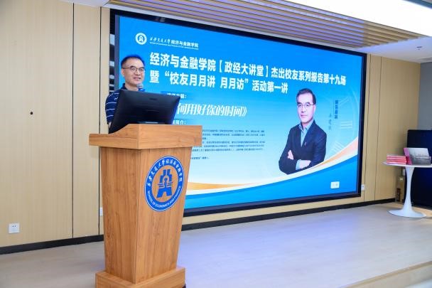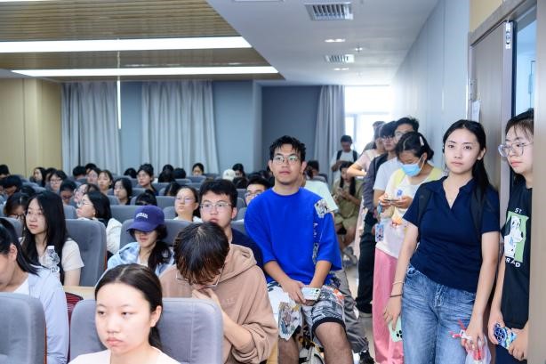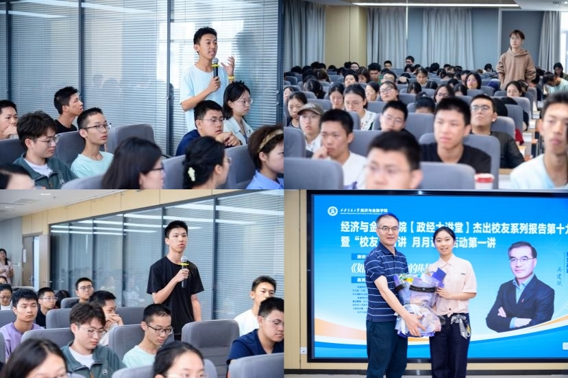 揭牌仪式后,“校友月月讲、月月访”活动首讲正式开讲。作为业界公认的“时间管理大师”,吴建斌校友以《如何用好你的时间》为题,结合自身40年求学、职场与人生实践,从时间规划方法、目标拆解技巧、效率提升策略等维度,为新生带来一场兼具理论深度与实践价值的思想盛宴。近200名新生和教师全程专注聆听,现场秩序井然,同学们在笔记本上认真记录下核心观点,不时报以热烈的掌声来回应学长的精彩分享,学习热情高涨。