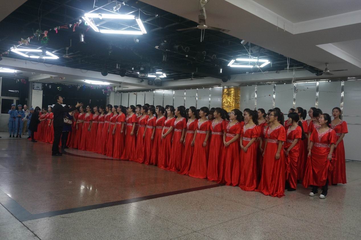 经金学院参赛队伍在指挥老师周大勇的带领下,经过一个多月紧张却又有条不紊的排练,他们激情昂扬、精神饱满地投入到了比赛当中。当天下午,我院参赛队伍在进行最后的准备工作-----领合唱服装和化妆。在进场之前,周大勇老师对不同声部的同学们给予了最后的指导,为老师的敬业精神和同学们的热情投入点赞!我院宋丽颖老师、周建伦老师、王平老师莅临现场河同学们同台歌唱,给予了同学们真切的鼓励和助威。