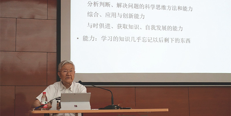马知恩教授结合自己六十余年的教学经验与体会,提出教师应该从以下五点来完善自身教育教学水平:(一)敬业精神是前提;(二)更新教育理念是先导;(三)提升教学能力与水平是核心;(四)创新教学模式改革教学方法是关键;(五)改革评价与考核内容和方法是保障。马知恩教授对这五点内容一一进行了详细解读,他将“培养学生的创新思维”这一观念贯穿始终,将自己学习与研究的思维方法、解决实际问题经验和体会融入到讲课中。马知恩教授还以变魔术为例,向教师们明晰了讲课时要使学生感到自然而不是突然的过程。他认为,更新教育理念是培养创新人才的先导,首先要从以教为中心转向以学为中心,处理好知识与能力的关系;其次应提升教学水平,揭示问题本质、传授科学思想;再次应当创新教学模式,改革教学方法。分享会上,马知恩教授以自己讲授的微积分课堂为例,以新颖的形式为参会教师讲授示范课。马知恩教授指出,优秀教师的水平在于他能够揭示隐藏在“冰冷美丽”背后的“火热思考”。"是什么"是传授知识,学生只有知道"为什么",才能传承思想,并实现进一步的改进和创新。