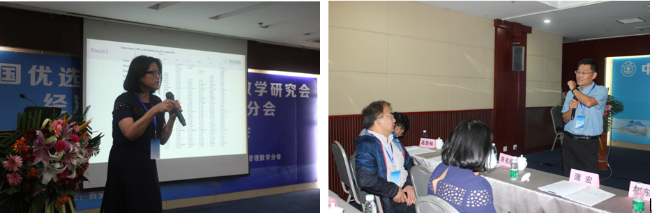 管理学院常象宇副教授。杜东雷教授作了题为“Blockchian and Bitcoin”的报告,报告以Bitcoin为例介绍嵌入式技术背后的基本概念和机制,并讨论了块智能技术在智能合同,智能货币,金融,银行,投资和交易等其他实际情况下的潜在应用;薄宏教授的报告题目为“Private Equity Investment and IPO Underpricing in China”,发现并解释了PE支持的IPO的定价偏低的现象与可能的内在机理;朱书尚教授报告题目为“Portfolio Optimization with Nonparametric Value-at-Risk: A Block Coordinate Descent Method”,报告采用核心VaR和二次VaR作为风险度量,同时介绍了非参数风险价值风险(VaR)的投资组合优化方法,并提出了一些专门设计的块坐标下降(BCD)方法来找到近似或局部最优解;常象宇副教授的报告题目为“City-Wide Statistical Patterns of Aggregate Bike Flows in Bicycle Sharing Systems”,该报告以芝加哥和杭州几个月收集的两个大型数据集,对共享自行车流量数据进行全面分析,分析揭示了自行车流量数据的内在结构和在空间和时间尺度上的冲击规律。此外,大会还邀请浙江大学数学科学学院吴庆标教授、北华大学数学与统计学院杨月婷教授、上海理工大学屈绍建教授、厦门大学嘉庚学院王生喜教授、新疆财经大学李国东教授、南京财经大学张从军教授作大会报告,报告内容涉及深度学习、摆动期权定价、动态代理和供应链管理等方面。20日上午的青年学者论坛上,7位青年学者和2位教材编写者就自己的研究成果做了精彩的报告,大会随后评选出优秀论文一等奖两名、二等奖两名、三等奖三名、优秀教材二等奖两名。