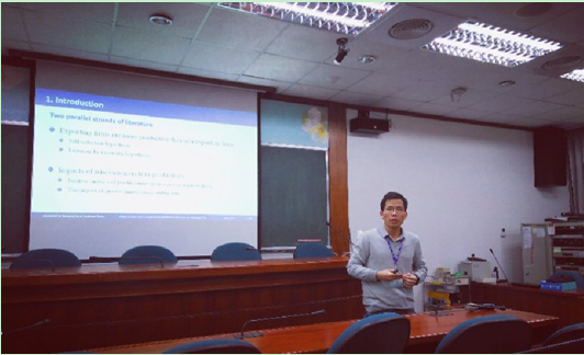 在研讨会的第二场报告会上,经金学院聂鹏副教授做了题为“What Chinese worker value: an analysis of job satisfaction, job expectations, and labor turnover in China”的报告。来自“中央研究院”的陈嘉雯研究员对聂鹏老师的报告进行评论,与会学者也与聂鹏老师展开热烈讨论。在下午举行的第七场报告会上,经金学院戴小勇老师做了题为“Disentangling the effects of endogenous export and innovation on the performance of Chinese manufacturing firms”的报告。“中央研究院”的游雅婷老师对报告内容提出了诸多建设性意见,戴小勇老师针对与会学者提出的问题逐一回复。研讨会在“中央研究院”的精心安排与参会学者的积极互动下取得圆满成功。