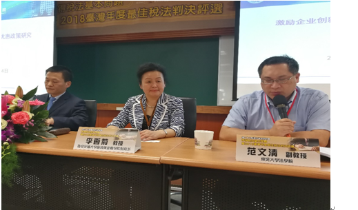 、华南理工大学、深圳大学等,中国台湾地区的台湾大学、东吴大学、中正大学、辅仁大学、高雄科技大学以及台湾资诚联合会计师事务所、普华商务法律事务所、中国台湾地区的“司法院”、“财政部”、“最高行政法院”、“高等法院检察署”等两岸财税法学界理论与实务工作者,约二百余人参加了本次研讨会。两岸财税法学专家围绕主题展开了热烈而深入的探讨。