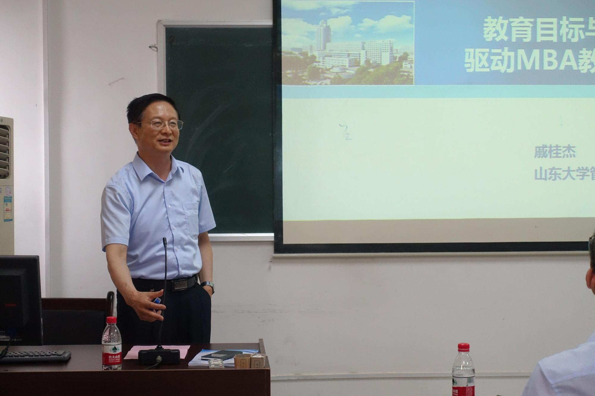 戚桂杰教授首先做了《如何提高MBA培养质量》的主题报告,他从MBA教育目标、培养方式、学位论文、案例教学技巧等方面进行讲解。戚教授鼓励年轻教师不仅要承担授课任务,更要了解整个MBA培养方案,清楚所授课程作用,及时完善授课内容。在指导MBA论文中,戚教授针对在职学生的特点,指出导师要严格要求、充分沟通,及时提醒学生按时撰写论文。在案例教学中要选择好的案例,用好一个案例并持续完善案例,抓住案例教学主要是强调师生之间的互动,在正确的时间提出正确的问题,对学生的回答做出积极反馈。