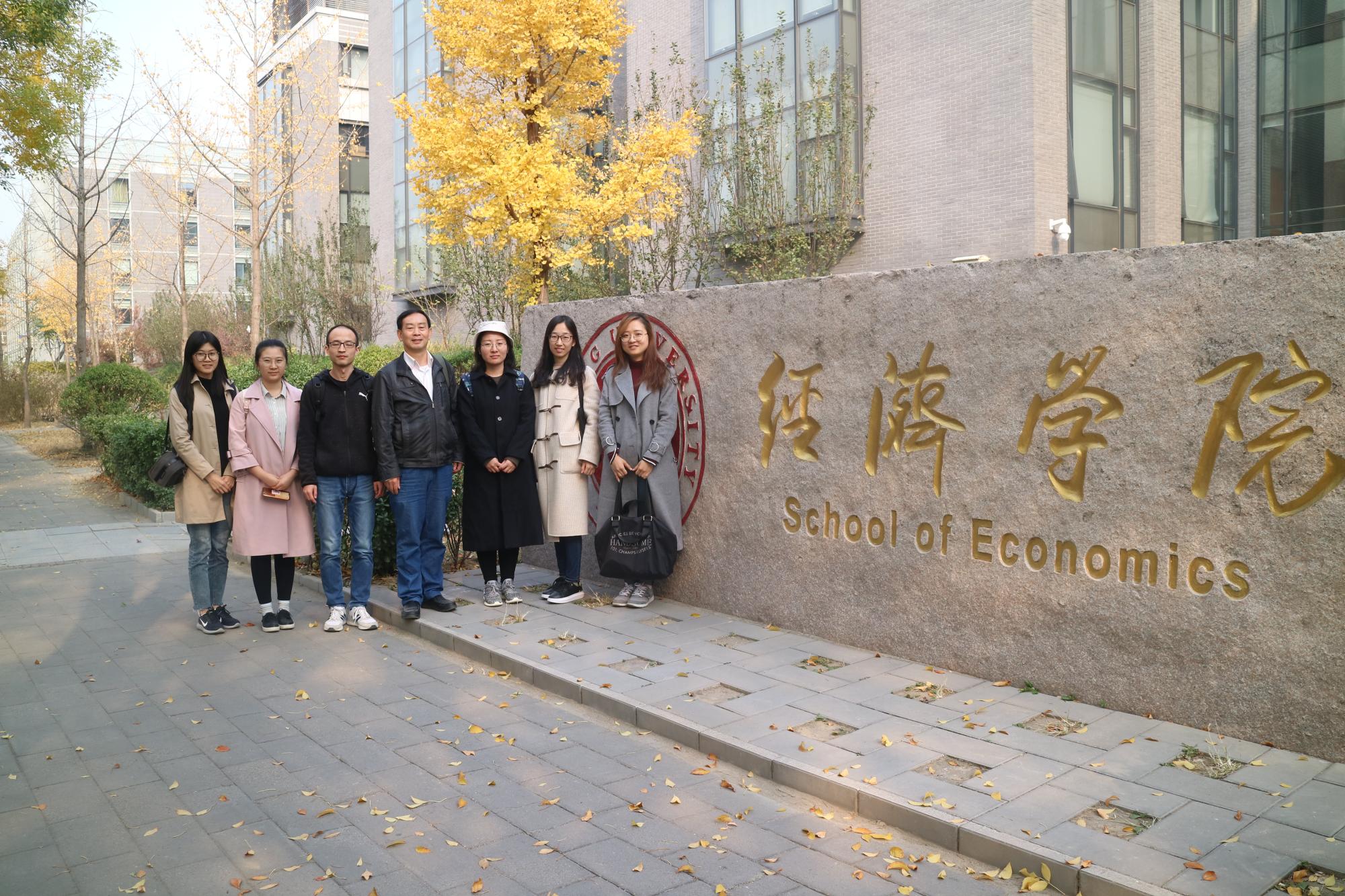 指导工作。接下来北大经济学院研会主席及部长几位同学分别介绍各自部门的学生活动开展情况,随后大家进行了交流。下午经金学院一行人被安排参加一场由著名经济学家顾海良教授主讲的报告会,经金学院王平老师被作为嘉宾安排在前席就坐。在北大,经金学院一行还抽空参观了学校教室和美丽的校园。