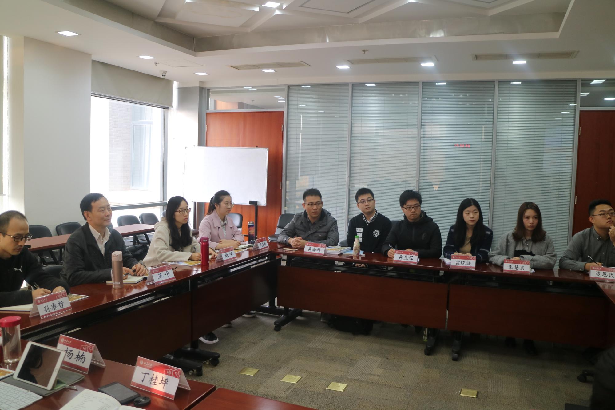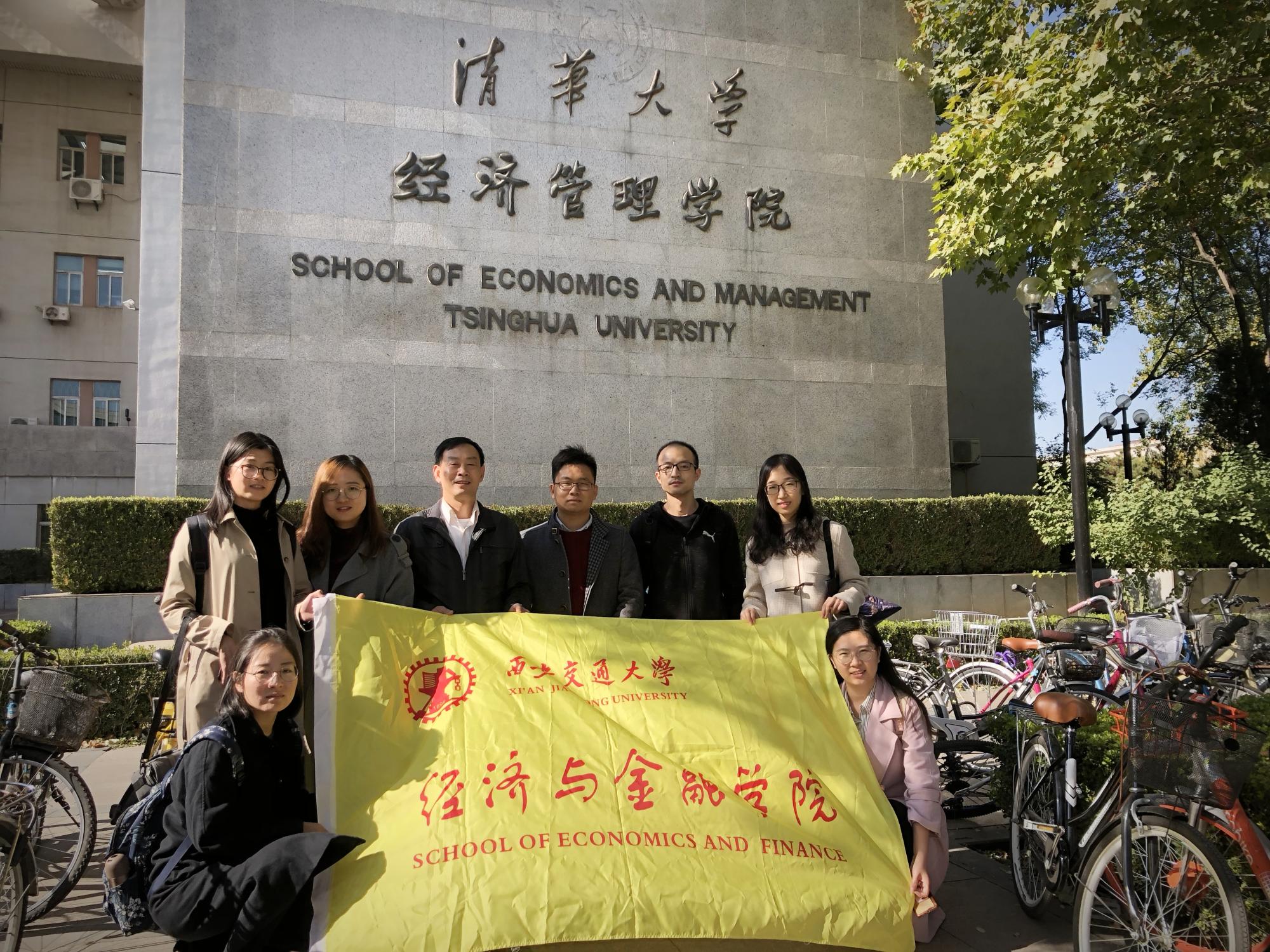 在清华大学,经济管理学院德育工作助理皇甫震博士首先接待了经金学院师生一行,根据事先的日程安排,上午旁听了清华经管院的一堂博士生课。下午清华大学经济管理学院党委研究生工作组组长杨思群副教授等给予了热情的接待,并同经金学院师生进行了座谈交流。座谈会上,杨老师详细介绍了清华“学生管理学生”的工作理念,学院不设置辅导员岗位,以聘请在读博士作为德育工作助理的方式服务全院师生,并强调学生的党建工作,学院实行党团班共建。然后,三位德育工作助理分别详细的介绍了各自所负责的学生活动开展情况。会上,王老师对杨老师的接待表示感谢,并把经金学院一些学生活动情况简单的介绍一下。随后大家互相进行了交流。中午利用休息时间大家在经管院德育工作助理的带领下,参观了研究生公寓。