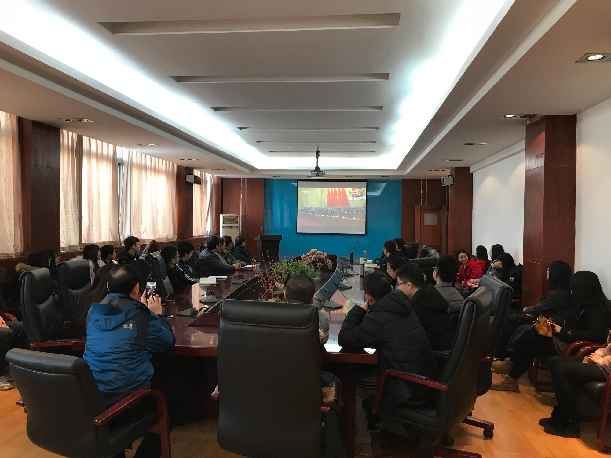 12月18日上午10时,经金学院领导班子、教工支部书记、青年教师代表和学生代表一起集体收看庆祝改革开放40周年大会实况。