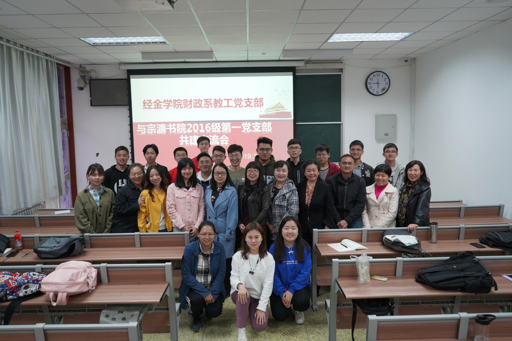 党委书记宋丽颖教授、财政系党支部书记王俊霞教授及全系党员教师、宗濂书院2016级第一党支部书记刘帅及支部全体党员同学等参加了此次交流会。