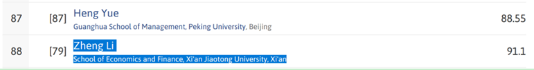 首位进入该排名中国前100强以及亚洲前500强的学者。
