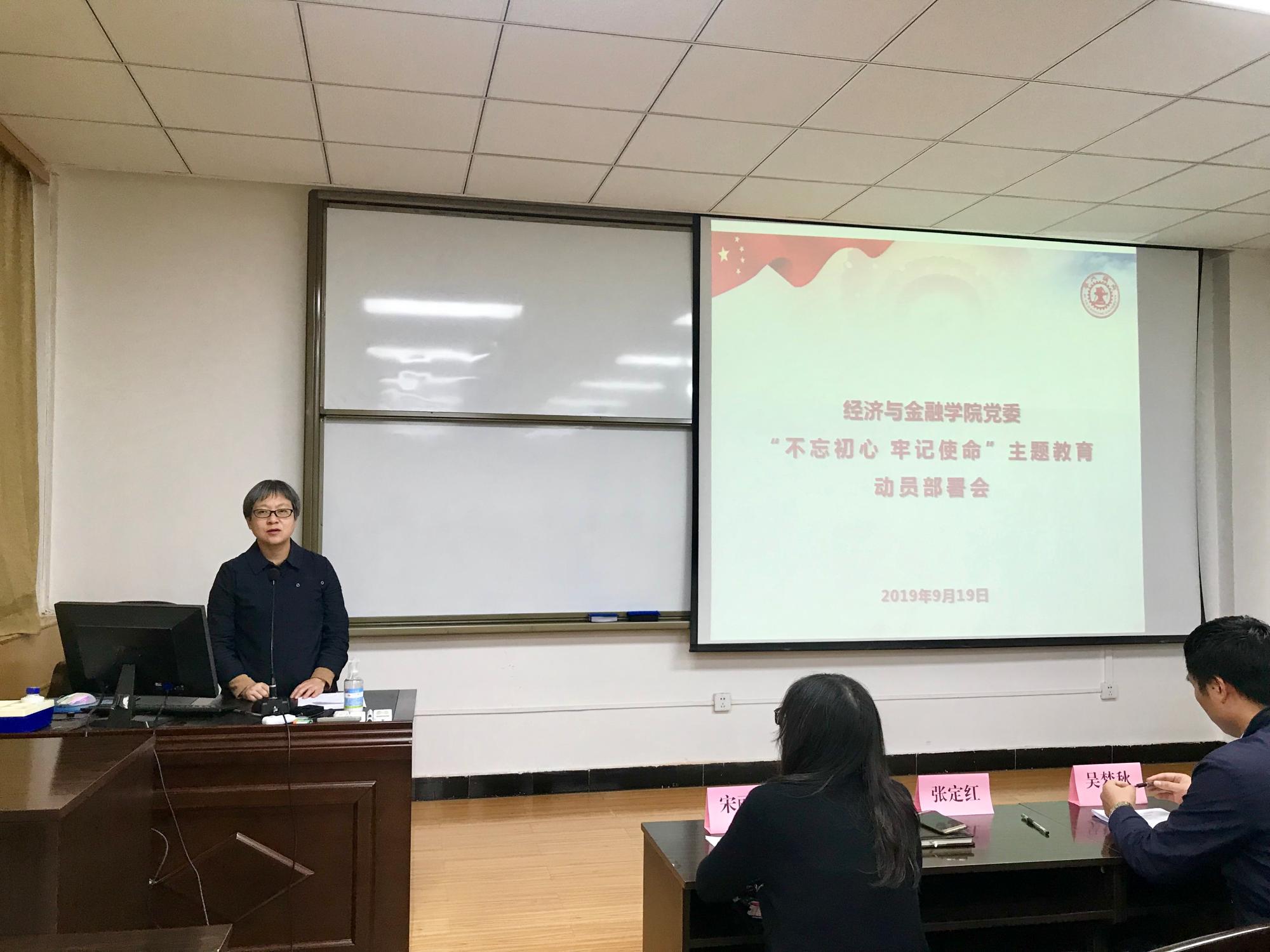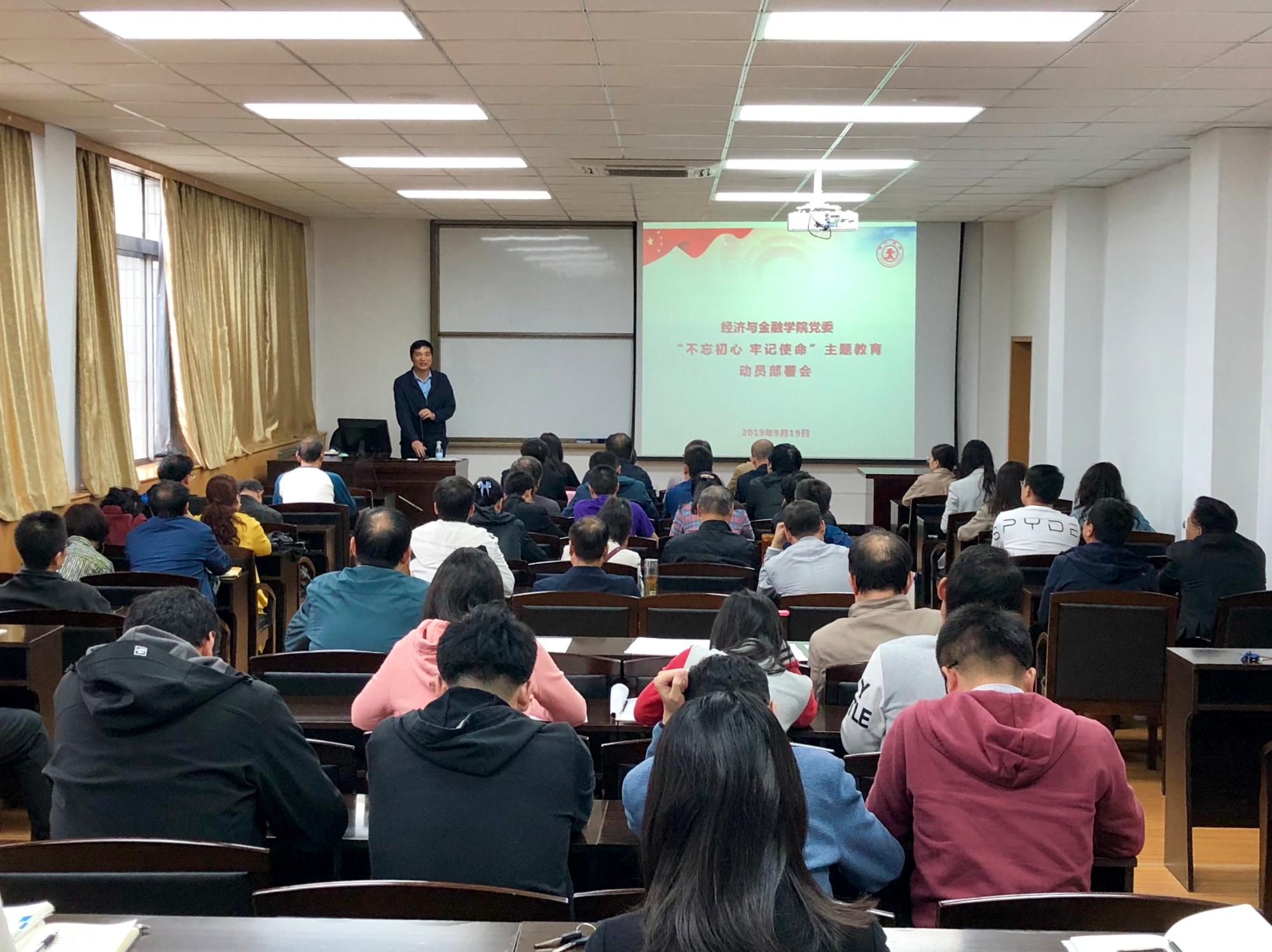 党委在财经主楼802报告厅召开“不忘初心、牢记使命”主题教育动员部署会。学院领导班子、教工党员、学生党员代表共计70余人参加会议。主题教育第十指导组联系常委张定红、成员吴孟秋、罗娴出席会议。会议由宋丽颖书记主持。
