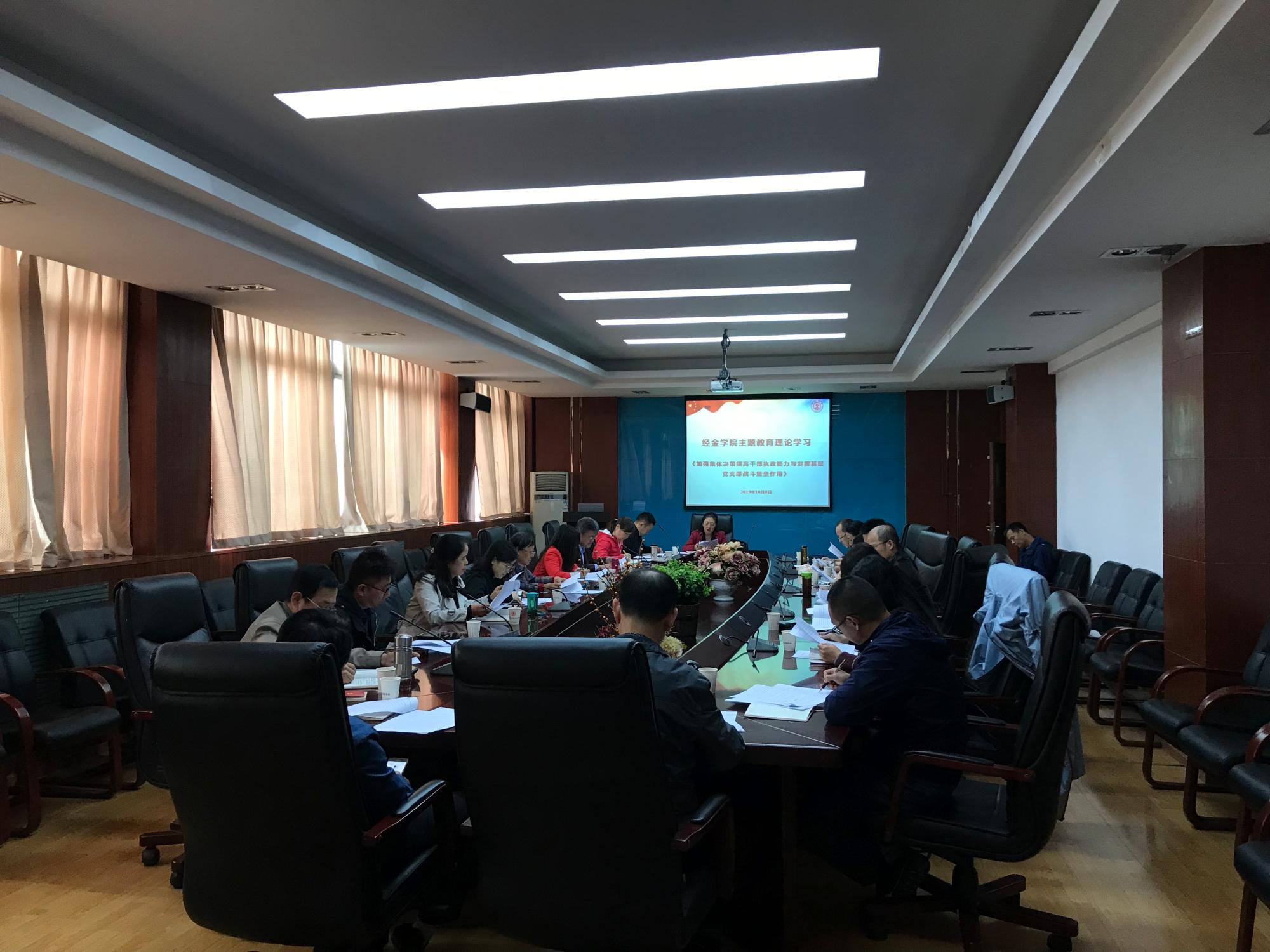 近日,经金学院党委开展“不忘初心、牢记使命”主题教育暨中心组(扩大)理论学习,以“加强集体决策提高干部执政能力,发挥基层党支部战斗堡垒作用”为主题,学习习近平总书记在十九届中央政治局第十五次集体学习时的讲话。学院领导班子、系主任、支部书记、院办主任、高培中心主任参加会议,学校第十指导组组长申小莹同志到会指导。会议由学院党委书记宋丽颖同志主持。