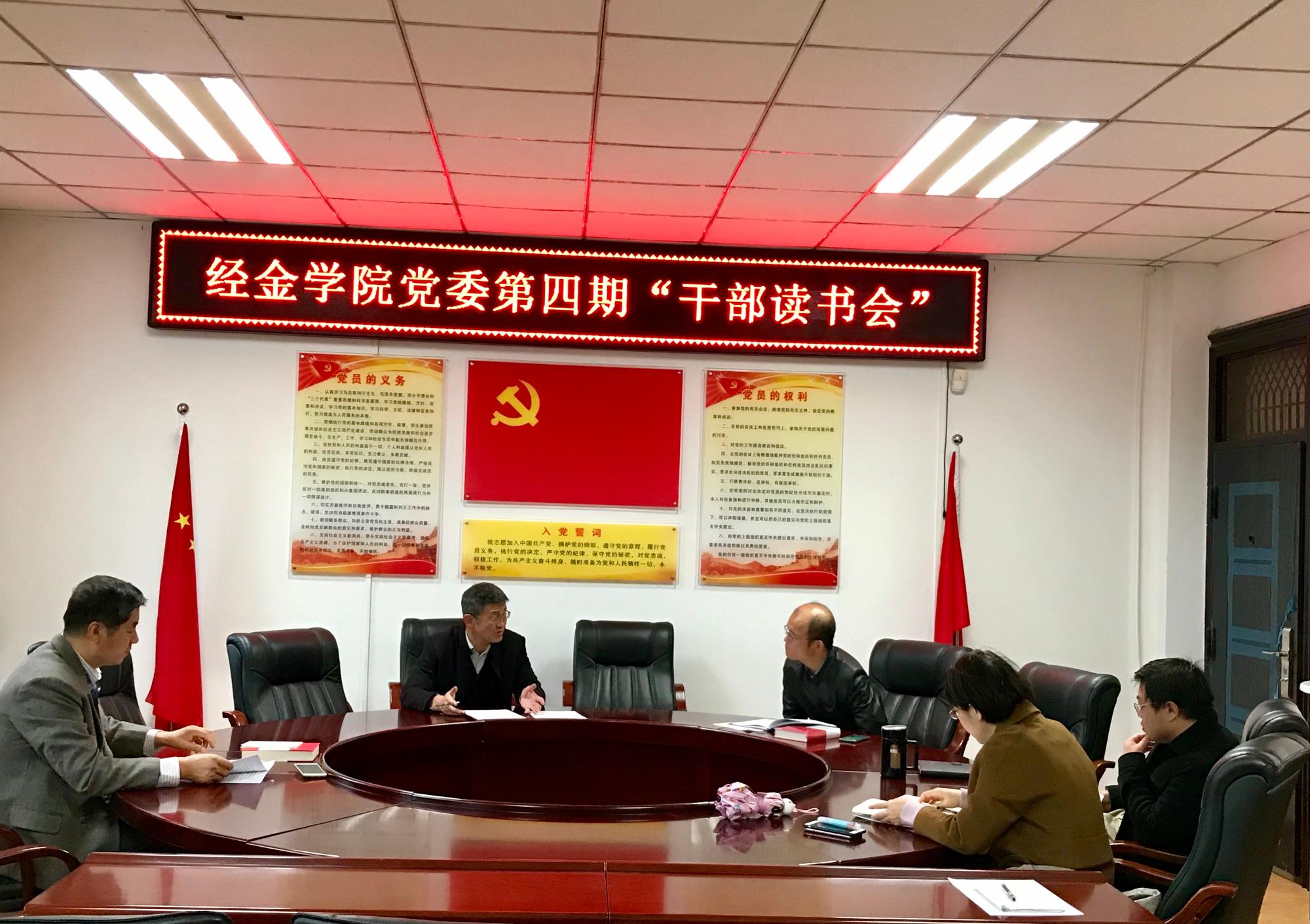10月24日上午,经金学院分党委举行第四期干部读书会,以“加强思想文化建设,培育学生家国情怀”为主题,集中学习了《习近平总书记在全国高校思想政治工作会议上的重要讲话》及《习近平总书记在学校思想政治理论课教师座谈会上的重要讲话》。学院党政领导班子成员参加会议。