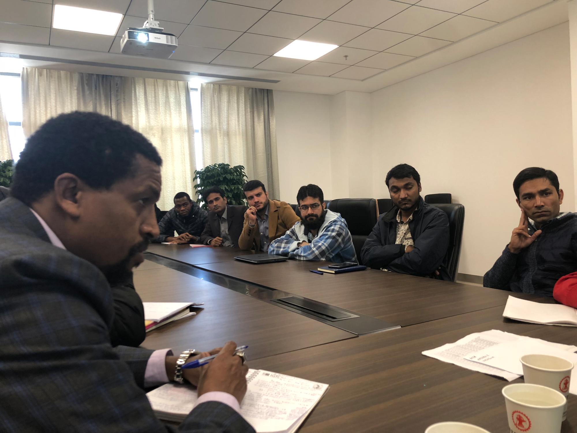 座谈会上,温军副院长首先代表学院对同学们进行了亲切问候,并细致的询问了他们的学习生活、宿舍条件、日常活动、学业进展等;接着向留学生们解读了学校留学生管理规章制度与学院留学生日常准则,接着就课堂纪律、考试规定和准则、学分换算等方面的规章制度对留学生进行了详细说明,并介绍了经金学院对留学生奖学金的动态评定机制。最后,对学生最为关心的毕业要求进行了说明,介绍了学院认定的国际学术期刊档次和级别。