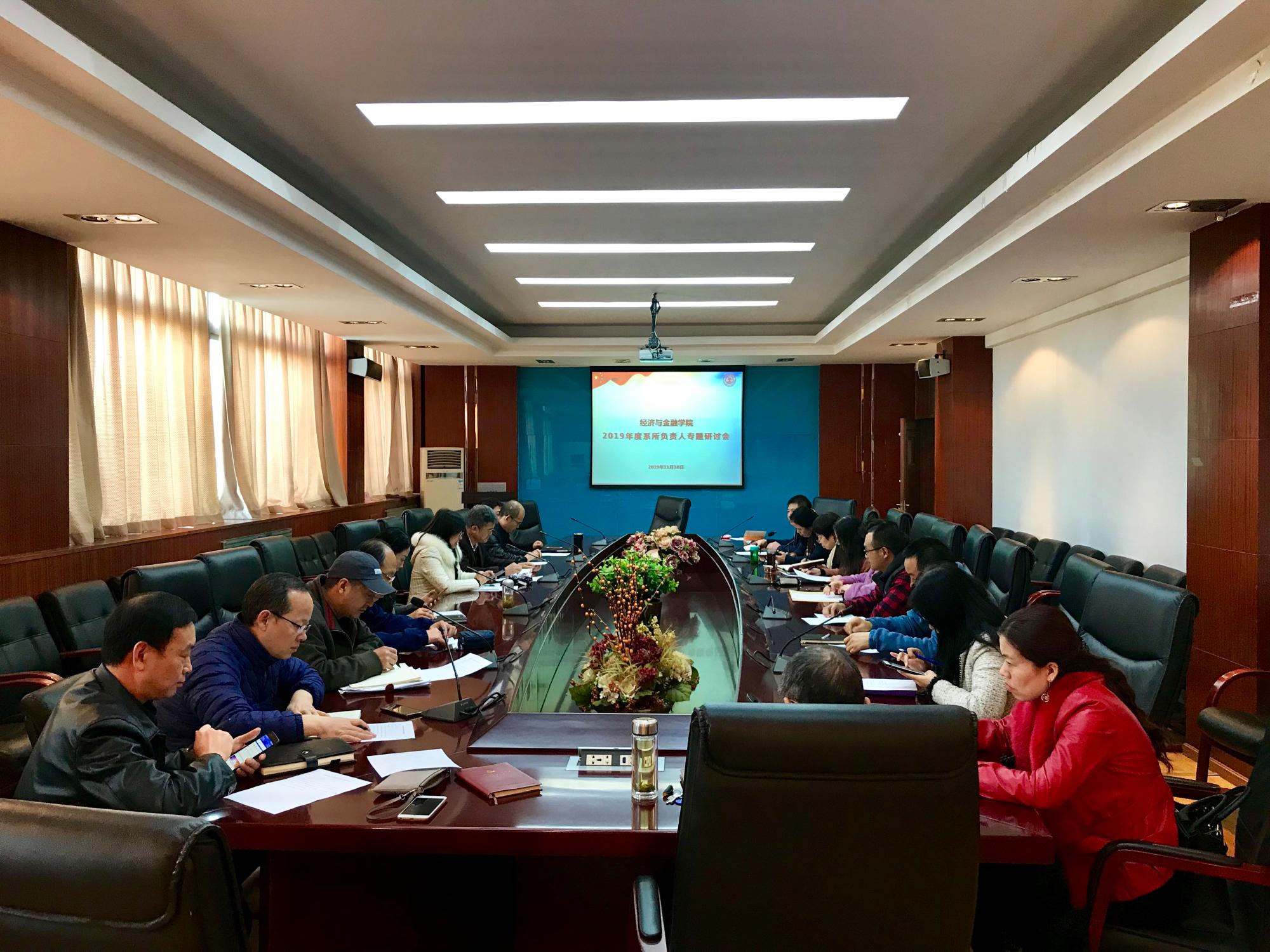 11月18日上午,经金学院召开2019年度系所负责人培训专题研讨会,学院领导班子、系主任、支部书记、系主任助理参会,围绕学院学科发展、队伍建设等问题展开探讨。会议由宋丽颖书记主持。