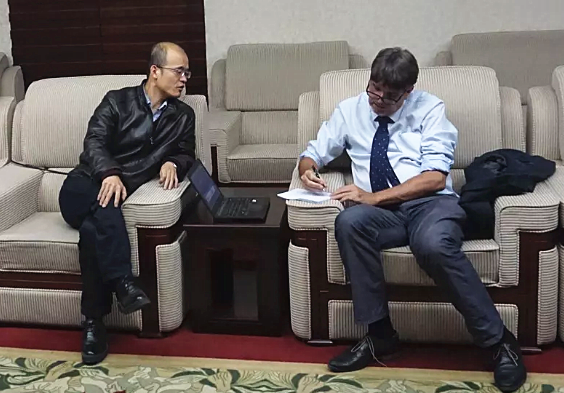 中国环境质量综合评价中心研究团队就相关交流合作事项进行洽谈。漫蛙漫画