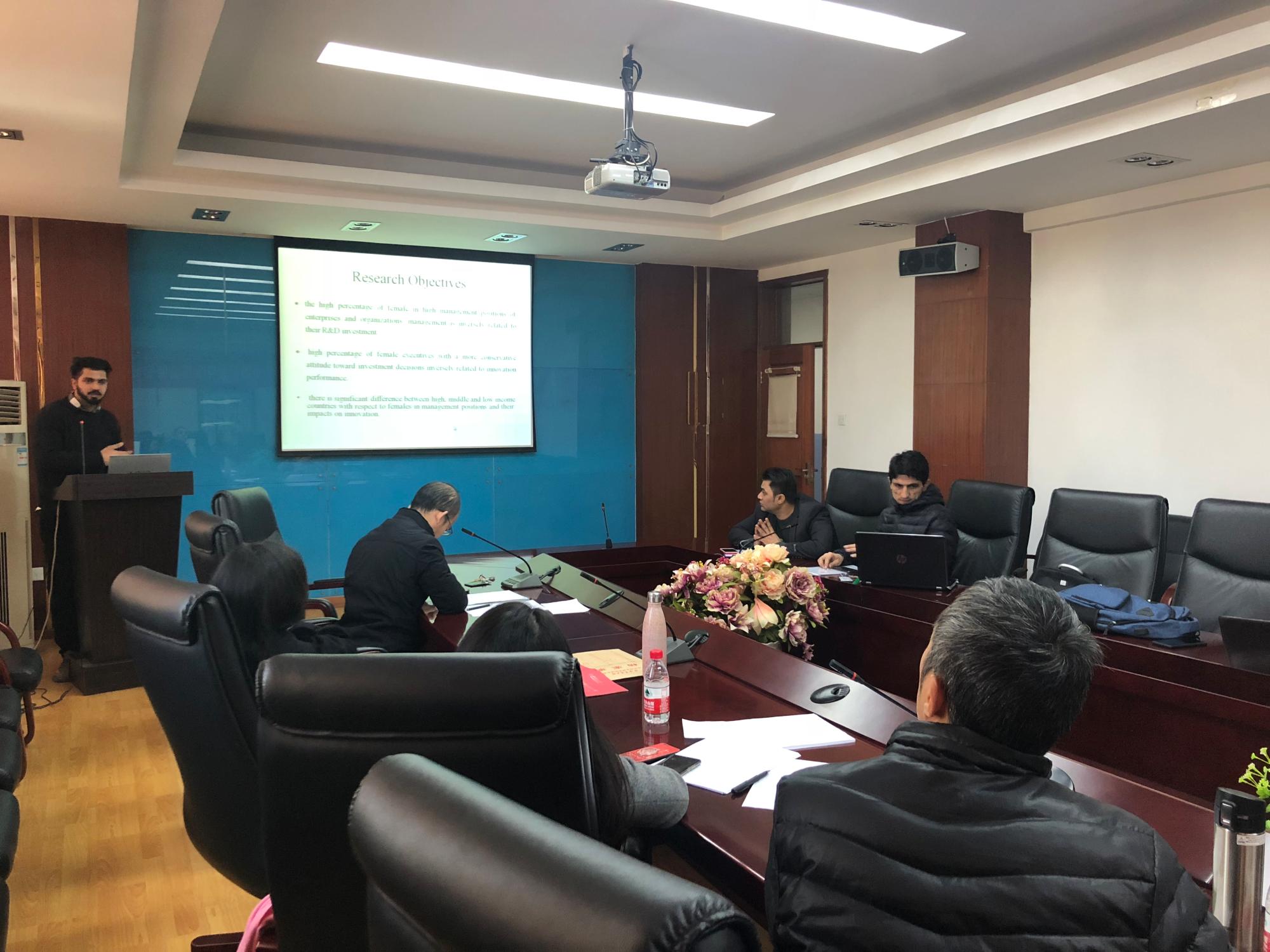 2019年12月10日-11日,经金学院在806国际交流厅对2017级和2018级硕士、博士留学生进行了中期考核。本次考核由温军副院长主持,9位博士、硕士生导师和留学生负责老师参加。