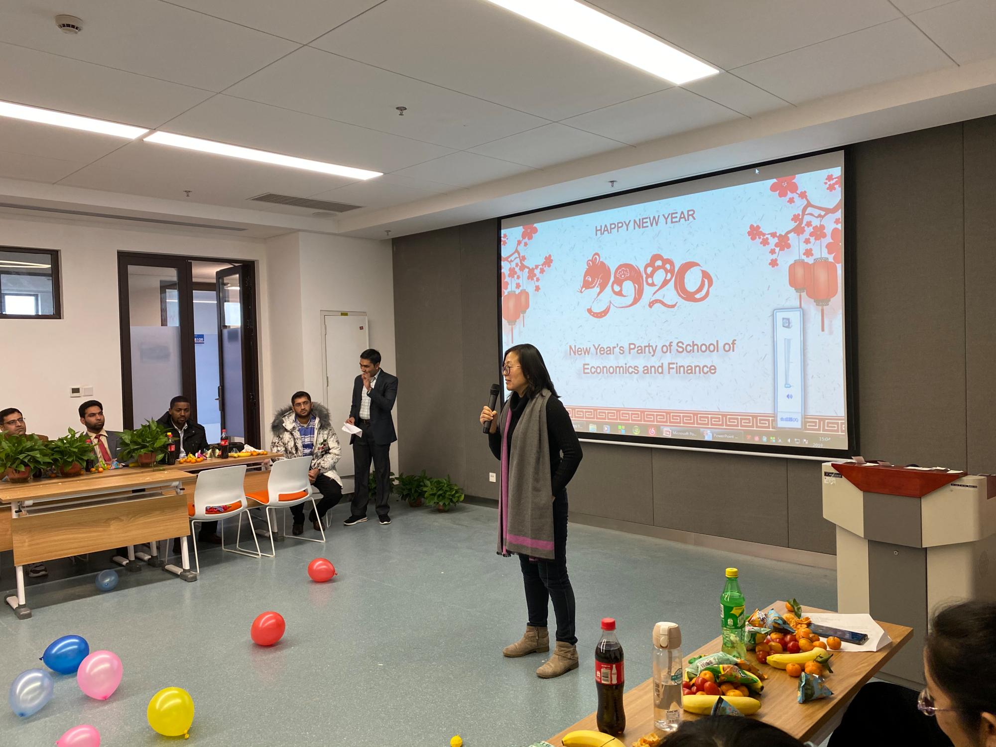 联欢会伊始,经金学院副院长温军致开幕词,表达了对留学生的殷切期望和新年祝福,希望他们在新的一年专注科研学习,加强对中国的了解与认识,成长为“爱华、亲华”人才。国际教育学院纪婷副院长致词,表达了对同学们新年的祝福和问候。两位优秀留学生代表MUSA UMAR、HAMID MAHMOOD向新生分享了他们的学习历程和科研心得。