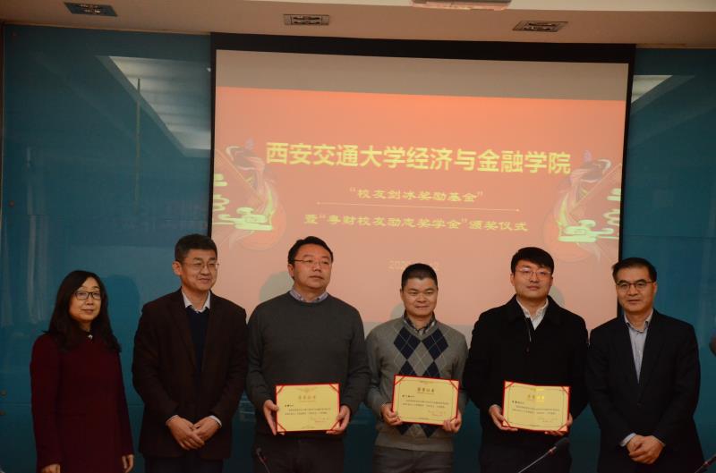 宋丽颖宣读了获奖人名单;吴建斌、宋丽颖、孙早为校友剑冰青年拔尖人才奖励基金获奖者张慧明、张飞鹏和李铮颁奖;吴建斌、刁辉波为15名校友剑冰励志奖学金获奖同学颁奖;刁辉波、赵卫滨为14名粤财校友励志奖学金获奖同学颁奖。