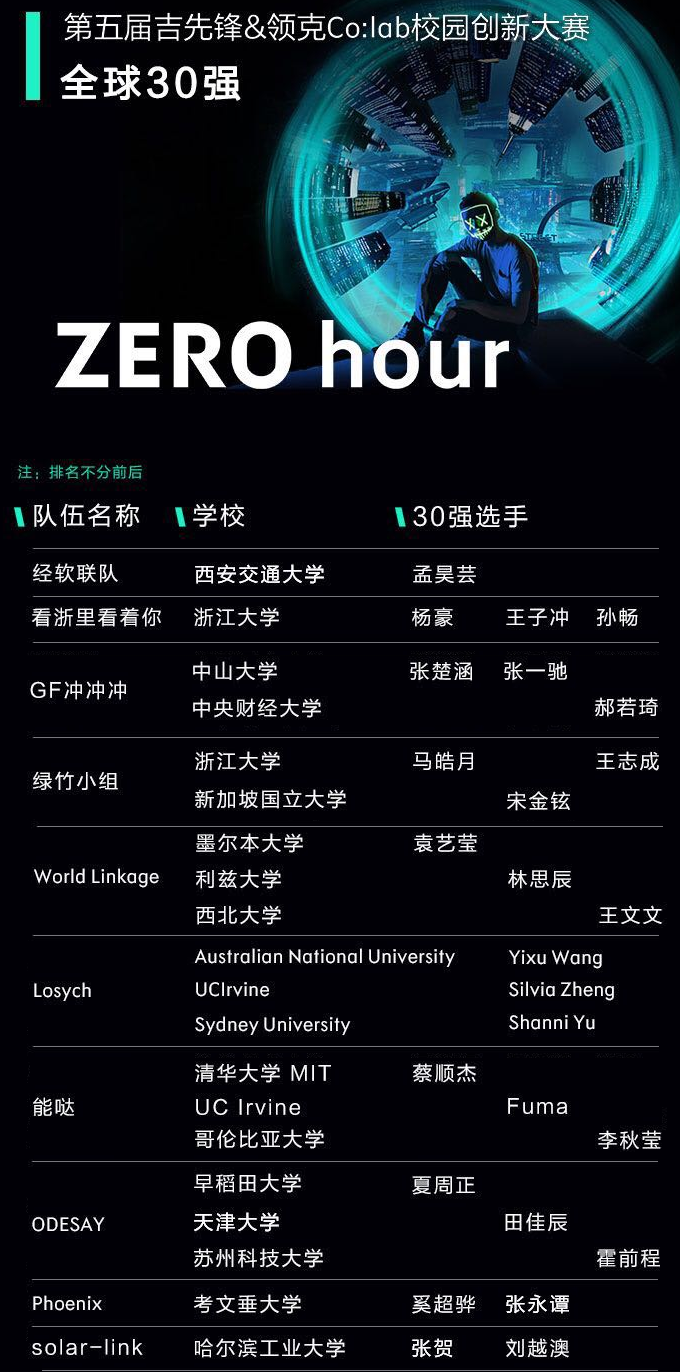 吉利控股主办的吉先锋大赛(G-Pioneer)是面向全球大学生征集创意并选拔优秀人才的国际性赛事项目。大赛每1-2年举办一次,今年已经来到第五届。第五届吉先锋创意大赛的主题是 “Zero Hour: 立刻采取行动,创造一个可持续的世界”。