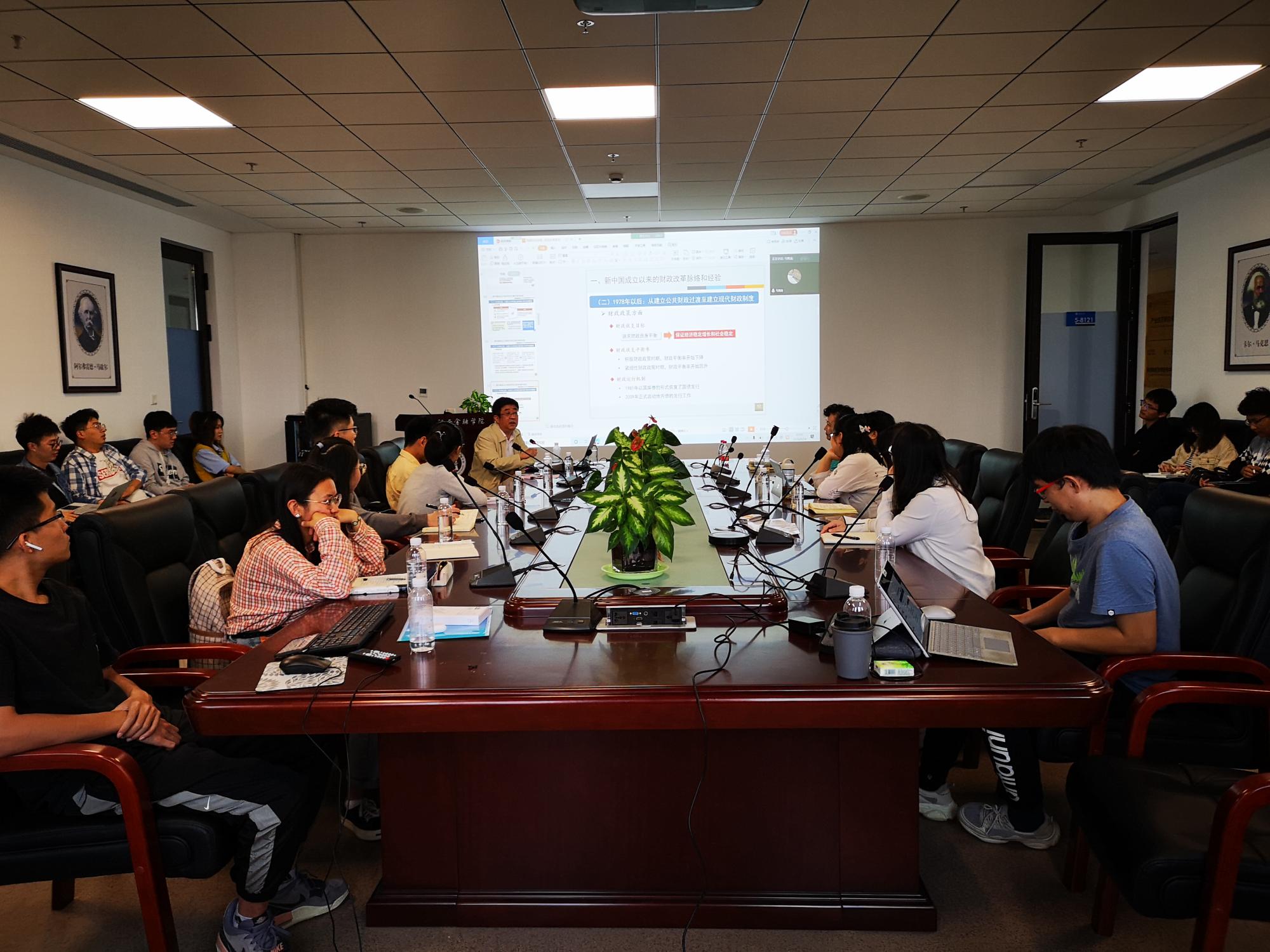 “科创月”系列学术活动中,由中央财经大学党委常委、副校长马海涛教授作的主题为《我国财政发展脉络及“十四五”财政改革取向》的报告受到师生一致好评。报告会由学院财政系主任王俊霞教授主持,学院党委书记宋丽颖教授、财政系全体教师和本校其他师生参加。讲座采用线下和线上腾讯会议相结合的形式。