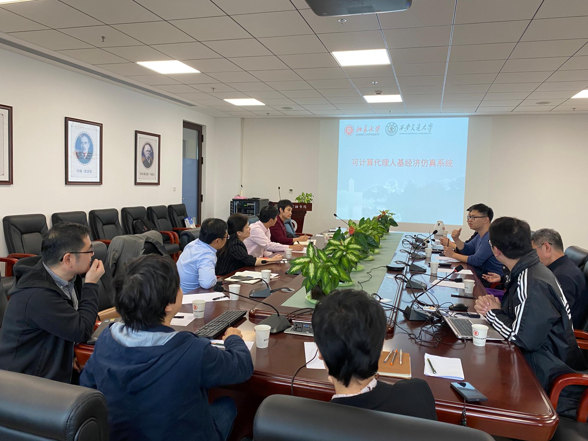 新结构经济学与智享财经数据科学研究院,聂清副校长一行先后听取了宋鹏程助理教授等人关于“可计算代理人机经济仿真系统”以及“产业政策经济效应量化分析虚拟仿真实验教学项目”的介绍。