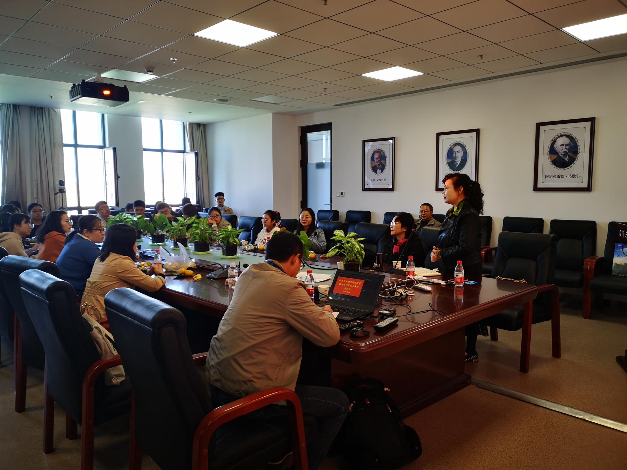 财政系在创新港涵英楼5-8121会议室召开2020年入校研究生与导师座谈会,财政系老师和2020级研究生参加了会议。