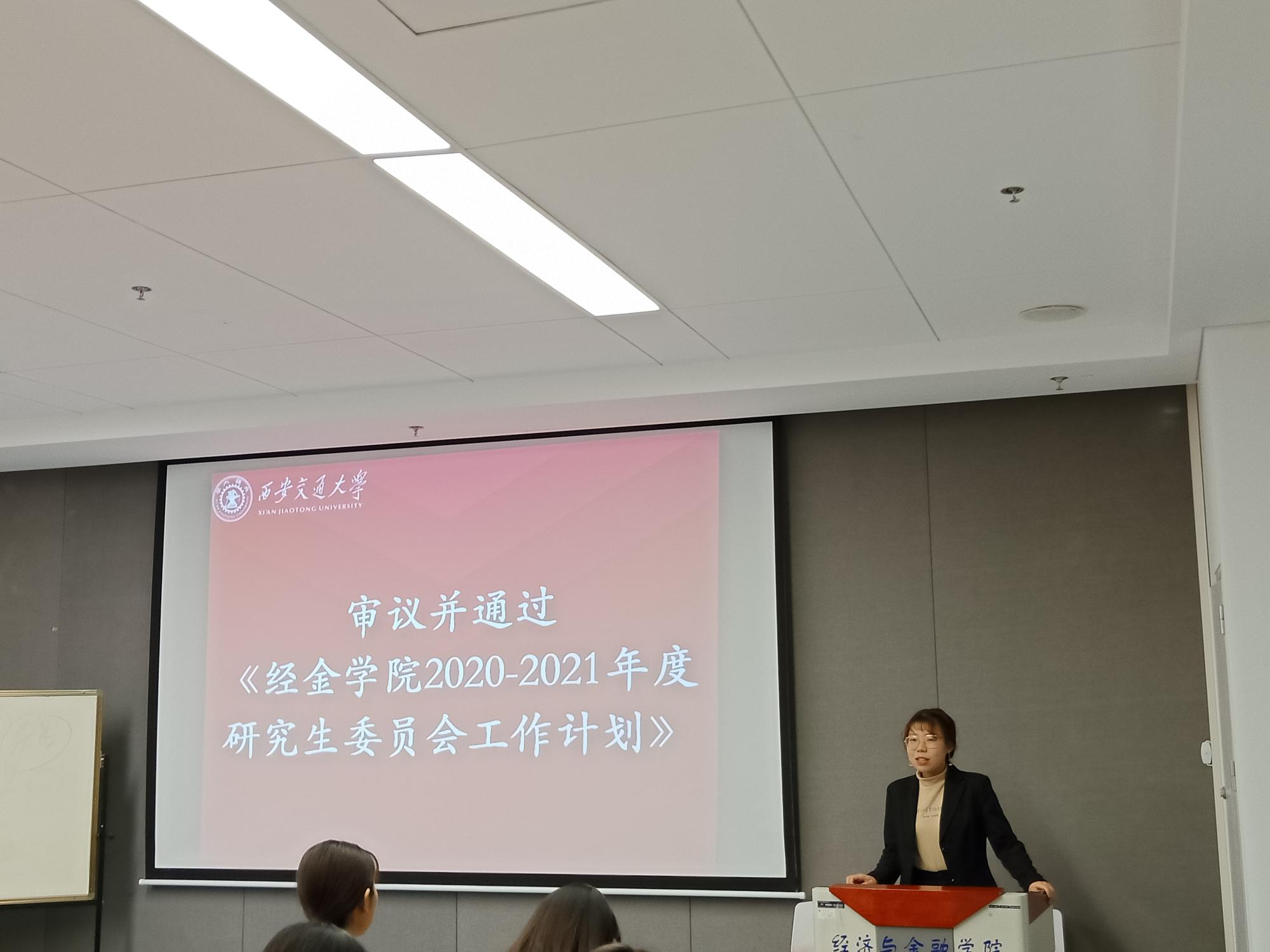 第十次研究生代表大会选举办法(草案)》,之后大会根据无记名投票选举了姜圣韵、杨婷婷和长孙思凡三位同学成为了经金学院第二十届研究生会主席团成员,李明来、薛百峰等十位同学成为了院研代会常任代表,许倩、赵文秀等十六位同学成为了校研代会一般代表。大会审议并通过了《经金学院2020-2021年度研究生委员会工作计划》。
