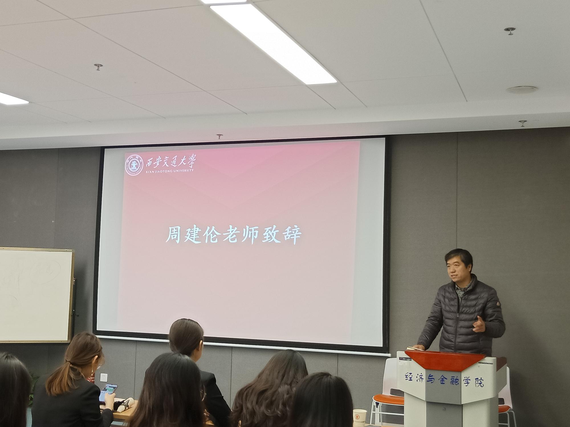 最后,院党委副书记周建伦老师上台致辞。他祝贺大会成功召开,并提出几点建议和期望。首先,今年是经金学院成立的第二十个年头,研究生代表大会的召开,是学生发挥民主行使权利的重要环节,代表着我们学院在管理科学化、治理标准化方面的进步,各位代表要发挥好“骨干”作用,及时将会议精神传达下去。其次,学校鼓励各个学院间多通气勤交流,希望在下一次的代表大会上,会有兄弟学院的学生代表观摩会议,经金学院也会派代表去其他学院建言献策,形成互相进步的风气。周副书记还着重强调要高度重视学科评估工作,上一轮评估中经金学院取得的成绩有目共睹,随着第五轮评估的展开,大家要积极动员,使学生参与率要进一步提高。他还希望在校生能够高度重视教育部的问卷调查,客观真实地反映学院情况,发挥在座“骨干”的榜样作用,带动新老同学高度关注学院学科和其他方面的发展,相信在老师和同学的广泛参与下,新一轮评估一定会收获新的硕果。