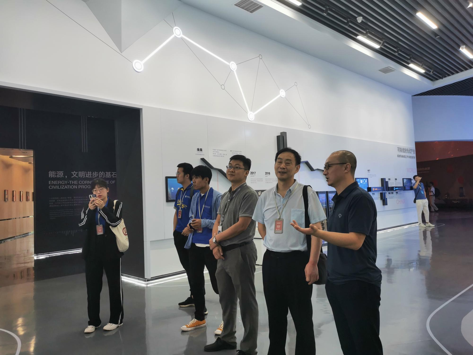 首先调研团队在王敏辉总监和李濛经理的带领下,参观了隆基股份的智慧展厅,对隆基股份及光伏产业的发展脉络进行深入的了解,之后实践团队与王敏辉总监和李濛经理等代表人员进行座谈交流。会上,王总和李经理分别介绍了隆基股份产业数字化转型情况,实践团队对相关问题进行了提问,对方给予了认真的释疑。王敏辉总监和李濛经理还为实践课题和同学们的职业发展提出了许多指导建议,座谈会气氛热烈融洽。