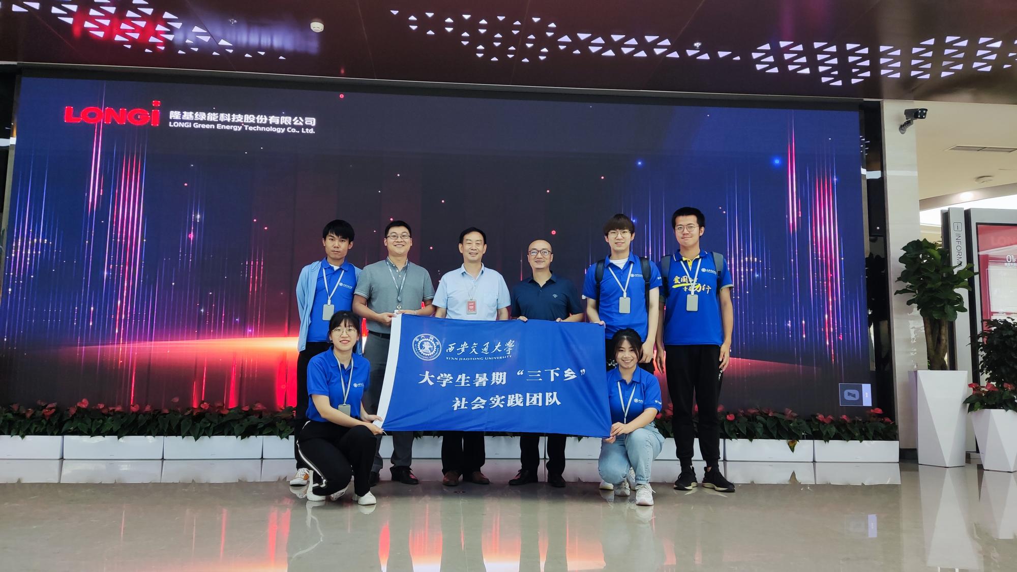 2021年7月28日上午,在经金学院团工委书记王平老师的带领下,博文实践团队来到隆基绿能科技股份有限公司(简称“隆基股份”)进行暑期社会实践调研。隆基股份品牌部王敏辉总监和李濛经理给予了热情的接待。本次实践旨在探究数字经济背景下光伏产业数字化转型问题。