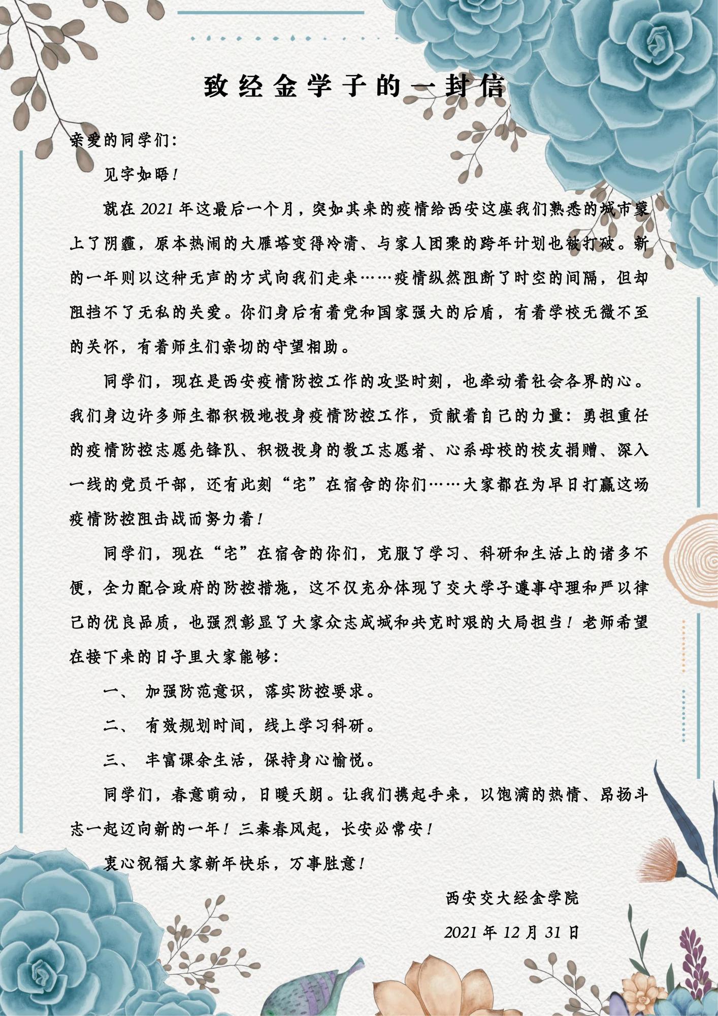 致经金学子一封信