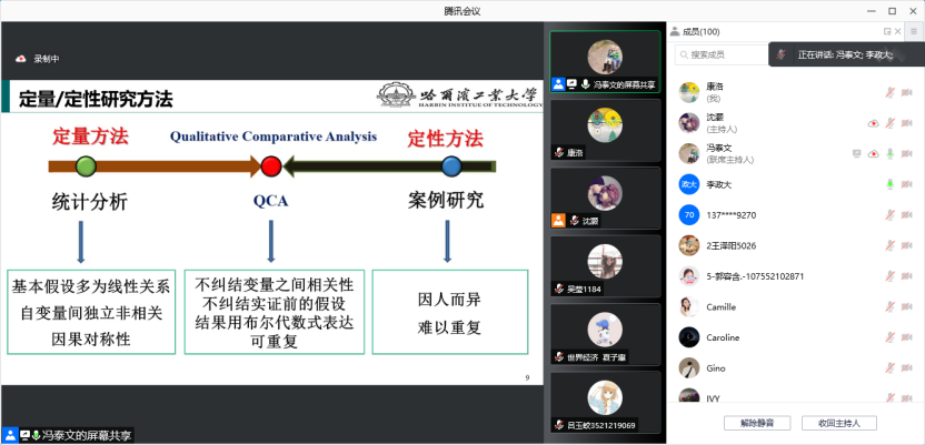 1月7日,学院经济学系贾智杰助理教授从上市公司的微观证据分析了上游国有企业与下游的经营绩效问题。分析了国企自身效率提高、规模变化和股权集中度的下降是国企对下游影响的主要原因。1月9日,哈尔滨工业大学(威海)经济管理学院副院长、博士生导师冯泰文教授基于fsQCA的组态分析,探讨了什么样的绿色创新模式产生城市高竞争力。绿色创新是实现区域经济提质增效的重要力量,而如何通过绿色创新提升城市绿色竞争力是创新领域有待回答的重要问题。