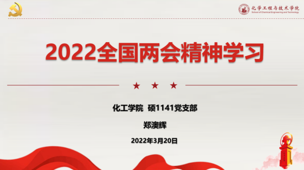 金融专硕党支部副书记黄英杰和硕1141党支部书记郑澳辉分别从支部建设理念、活动开展情况、新闻宣传成效等方面介绍了双方支部的具体情况。随后,郑澳辉带领大家共同学习2022全国两会的内容和精神。