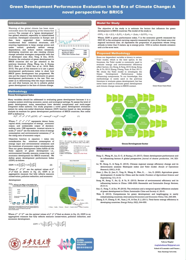 7月15日晚,“全球发展共同体”国际青年智汇行动在互联网上搭建的虚拟空间举办线上发布和创享会,经金学院温军教授指导的19级巴基斯坦籍博士留学生Nafeesa Mughal受邀参加,所作报告Green Development Performance Evaluation in the Era of Climate Change: A novel perspective for BRICS入选了2022年“全球发展共同体”十佳提案。