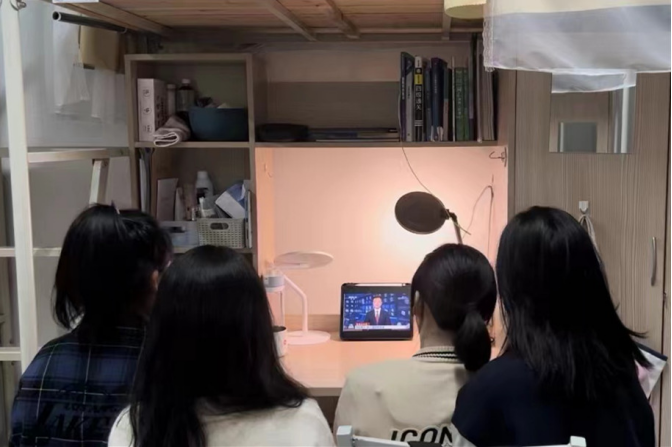 为进一步了解党的十八大以来十年里,我国各地区、各领域取得的一系列辉煌成就,经济2205团支部以寝室为单位,开展了观看新闻联播“喜迎二十大”系列报道活动。