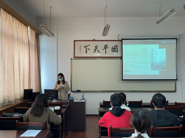 讲活历史故事,牢记历史使命。今天的幸福承载着中华民族的深厚历史,回顾我国的发展,中国共产党领导人民打江山、守江山,为人民谋取幸福,取得了辉煌成就。新时代青年要立足当下展望未来的同时,还应以史为鉴,加强理论学习。赵明明同学以党的“二十大”为契机,从历史角度对中国法制演变进行了讲解,并希望同学们在对历史的回顾中汲取前进的力量,将初心和使命镌刻于心,锤炼忠诚、担当的政治品格,努力创造无愧于时代的光辉业绩。