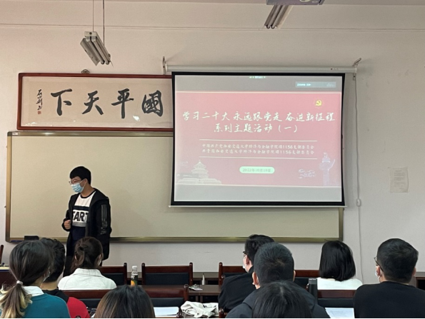 2022年10月16日召开的中国共产党第二十次全国代表大会,是向第二个百年奋斗目标进军的关键时刻召开的一次十分重要的大会。作为新时代青年,为紧跟党的步伐,10月18日上午,经金学院硕1156党支部在雁塔校区开展了 “学习二十大,永远跟党走,奋进新征程” 主题教育活动。
