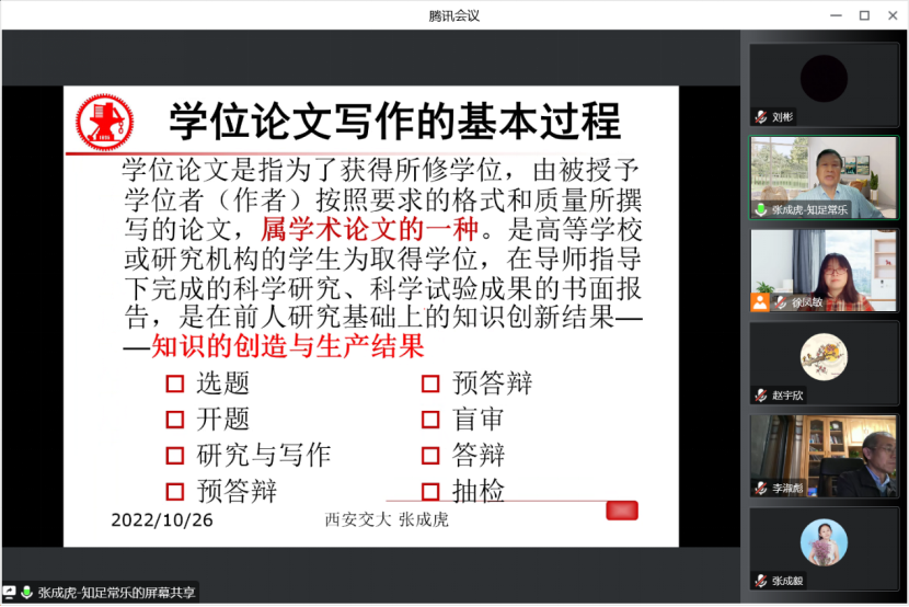 科研引路,砥砺前行。张成虎教授给新生做学术培训,从选题到答辩的各个环节,对学位论文的写作要求进行解析。最后,师生开展互动交流,探讨科研规划与职业发展等问题。各位老师们对同学们提出的问题给予宝贵的意见与指导。