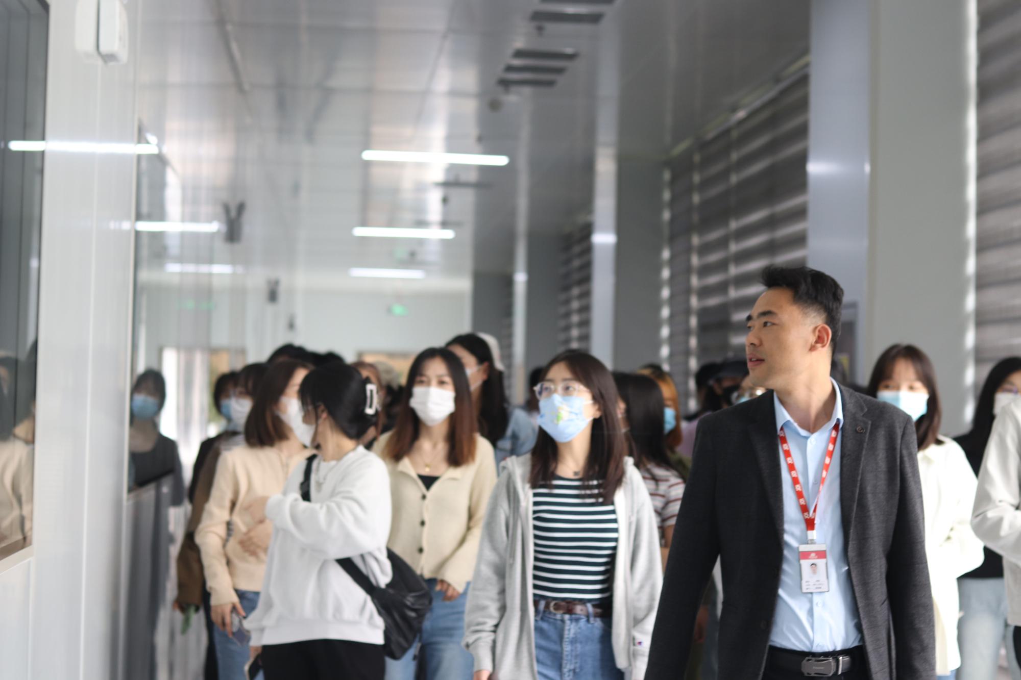 在“一带一路”临港产业园,同学们首先受到了临港产业园习小飞经理的热情欢迎。他向同学们介绍了产业园的优势、发展规划以及一期入驻企业基本情况。随后,在产业园企业负责人引领下,同学们实地参观了西安京虹显示科技有限责任公司的生产车间,体验了数字化、智能化对企业生产运营带来的巨大冲击以及企业为此进行的系列变革。