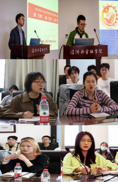 在互动交流环节,学院硕2173团支部书记吴永能和西北大学2022级财政学团支部书记王子轩分别对支部工作进行了汇报,重点分享了支部在学习贯彻落实习近平新时代中国特色社会主义思想、党的二十大精神上经验做法。与会师生围绕班团一体化建设、专业学习、科研竞赛、创新创业等方面展开了热烈交流,同学们一致表示要怀抱梦想又脚踏实地,敢想敢为又善作善成,不断提升个人综合素质,努力做到全面发展。