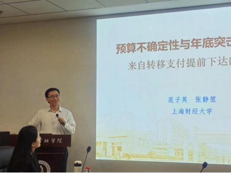 上海财经大学公共经济与管理学院院长范子英教授作了主题为《预算不确定性与年底突击花钱》的报告。范子英教授详细讲解了中国政府部门年底突击花钱的现象和本质。通过国际比较指出,转移支付带来的地方政府预算不确定性是年底突击花钱的主要原因之一。最后阐述了转移支付提前下达改革与年底突击花钱治理的关系。范子英教授的主旨演讲调动了参会学者的讨论热情,大家就中国的预算管理、财政数据可得性、财税体制改革等相关问题与范子英教授展开了热烈讨论。