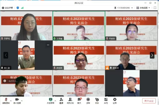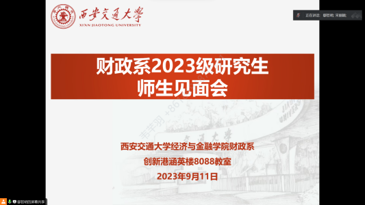 2023年9月11日,财政系举行了2023级研究生网上“师生见面交流会”。会议由财政系鄢哲明副教授主持,财政系教师和2023级研究生参加了会议。