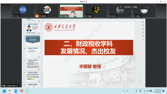 财政学科带头人宋丽颖教授向师生们介绍了财政税收学科最新发展情况、我国财政与税收发展的历史、当代中国财政税收制度发展现状、财政系杰出校友进行了详细介绍。宋老师同时鼓励同学们认真学习前沿知识、努力开展科学研究、积极投身社会实践,力争成为优秀的交大学子。