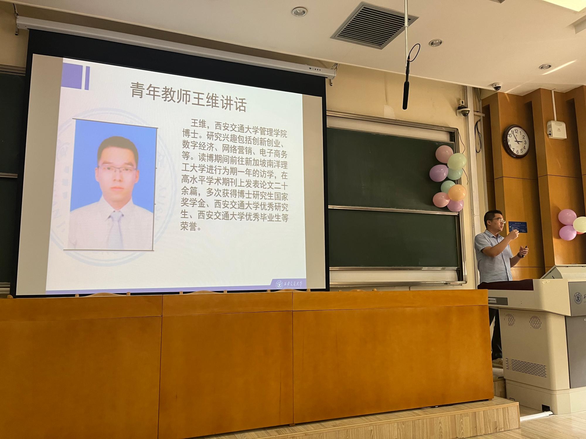 杨老师希望同学们在本科阶段多参加各类比赛以及科研活动,提高综合能力,为将来就业和研究生求学做好准备。王维老师介绍了理科生选择经管类专业的一些体会,分享了自己对于各学科的认识,介绍了什么是社会科学、什么是经济学和电子商务,并结合自己研究,介绍了知识,学习,研究之间的关系。