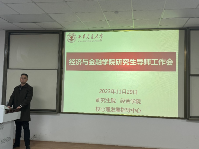 为了全面落实研究生导师立德树人根本任务,强化研究生导师思政工作能力,践行组织育人要求、汇聚育人合力,经金学院于11月29日下午召开研究生导师工作会。校党委研工部部长、研究生院副院长薛周利,学生心理发展指导中心、咨询中心主任姚斌,学院党委书记周建伦,学院研究生导师以及辅导员参加会议。会议由温军副院长主持。