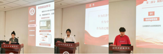 在交流发言环节,离退休老党员结合自身经历讲述的党史故事、重温的奋斗历程,令同志们深受感动。王文博教授就“数字经济”和“新质生产力”表达了自己的见解,并对研究生们寄予厚望,他强调:“世界是我们的,也是你们的,未来属于你们!”研究生入党积极分子代表徐昊同学则从青年视角探讨了税务如何赋能新质生产力,他结合自身专业为国家发展、社会繁荣积极献策,体现出了新时代学生党员的奋进之责与报国之志。
