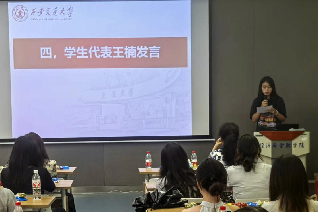 2024级研究生新生代表王楠在见面会上发言。她表示非常高兴能够在交大继续深造,对老师的博闻强识、图书馆的学习氛围、校园的宏伟气派都为新生们留下了美好印象。在对未来的期望中,她期望同学们可以树立更高的人生目标,在未来与西交、与经金学院、与财政系老师同学们相伴的三年里,度过一段有意义的研究生生活。