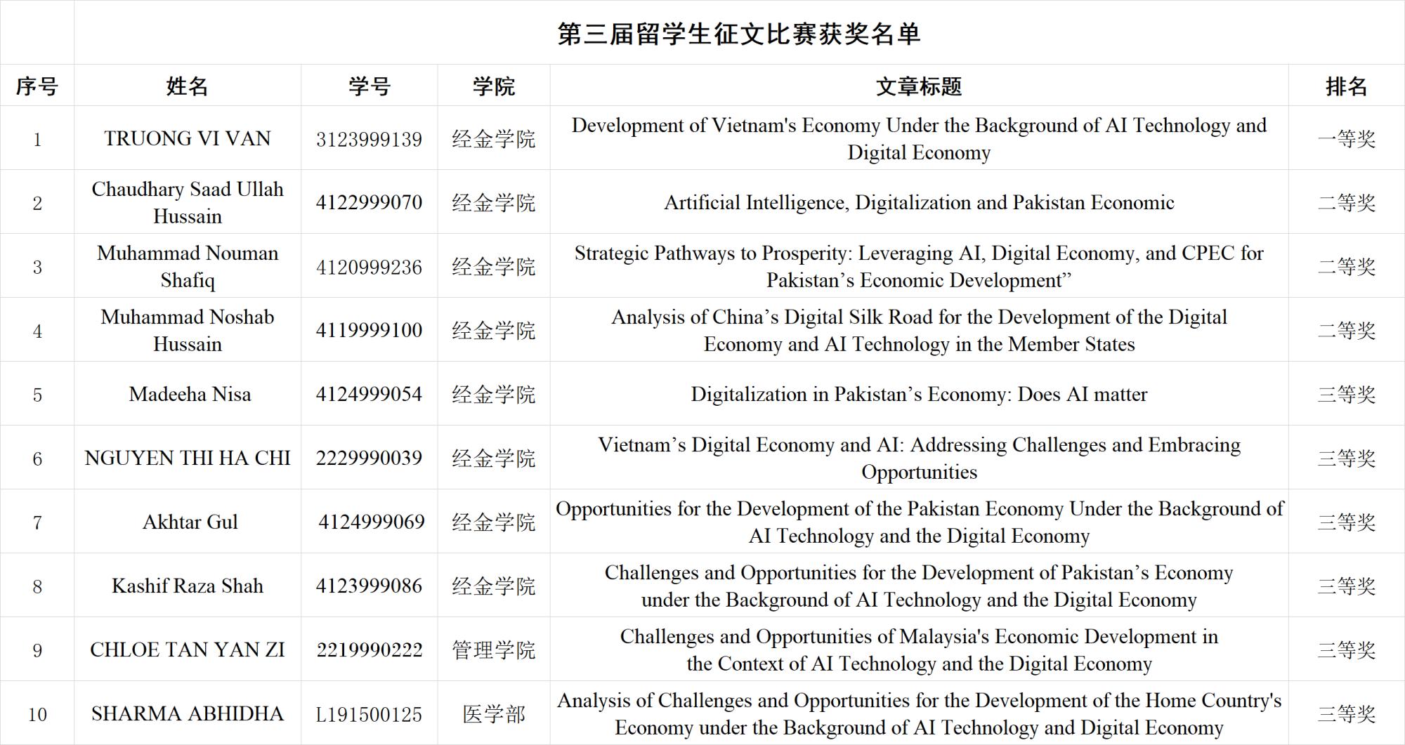 携手国际教育学院,成功举办了主题为“AI技术与数字经济背景下母国经济发展的挑战与机遇分析”的“第三届留学生征文比赛”。此次比赛主要面向漫蛙漫画