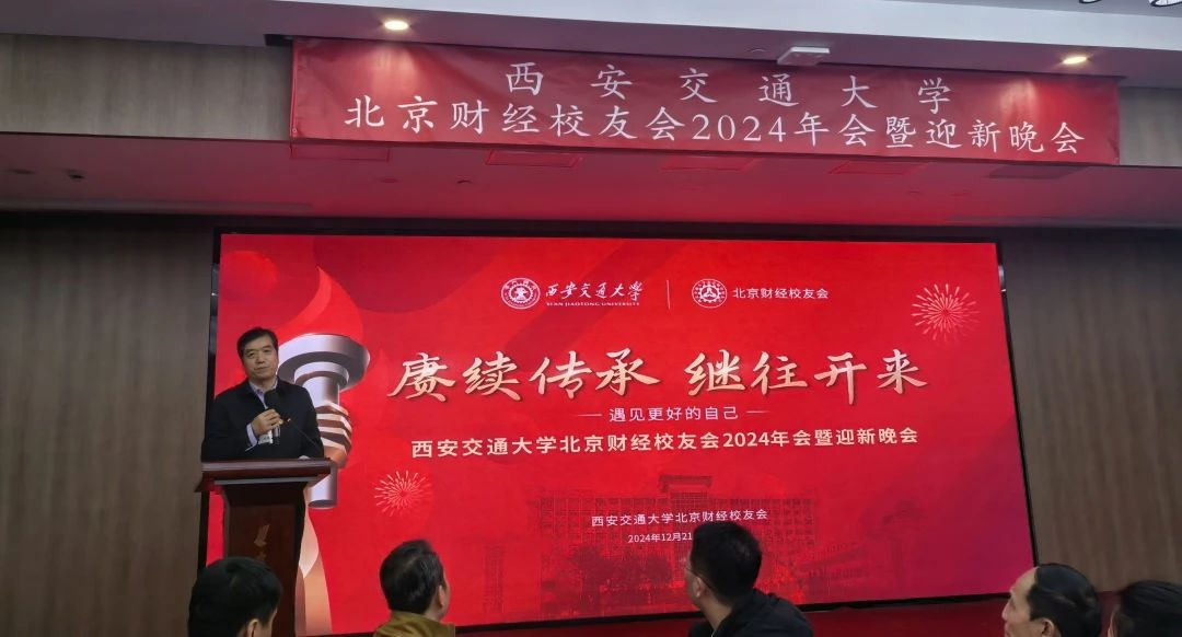 北京财经校友会2024年会的召开表示祝贺。周书记向校友们通报了学校发展近况以及经金学院2024年在人才培养、学科建设、科研成果和智库建设方面取得成绩。他说,学院取得这些成绩离不了校友们大力支持,希望大家继续关心和支持学院的发展。