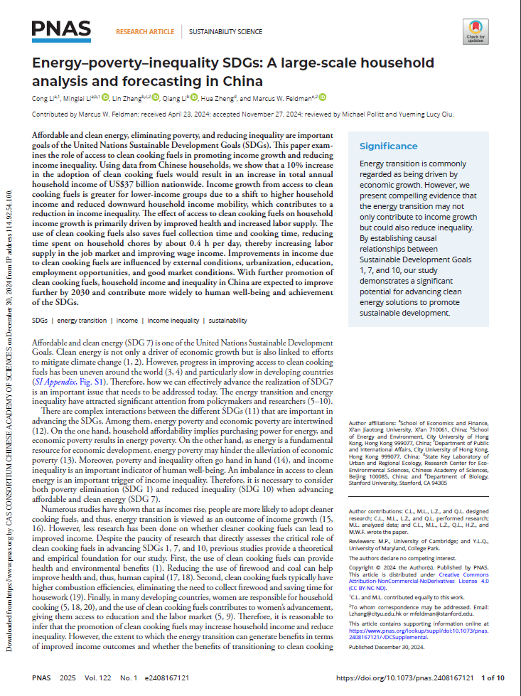 如何打破生态贫困陷阱,协同推进多重联合国可持续发展目标,是许多发展中国家共同面临的难题,也是团队带头人李聪教授多年研究的重点问题。他带领团队聚焦乡村振兴战略下生态文明、能源转型与农户福祉的联结,提出了将能源-贫困-不平等耦合关系纳入决策的可持续发展路径,凝练了和谐人与自然的安康模式,在美国科学院院刊(PNAS)等国际顶尖学术期刊上发表了系列论文,与世界分享了中国经验、陕西经验。