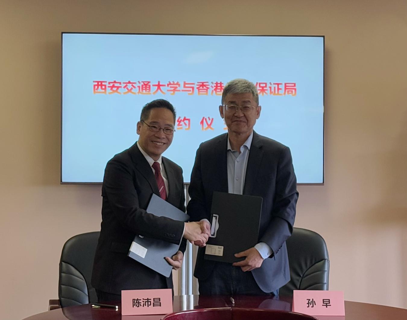 党委副书记孙早,香港品质保证局总裁陈沛昌,中国交通运输协会低空交通与经济专委会副会长李克澄,西安交通大学“一带一路”沿线国家标准研究院院长袁晓玲、自然资源部测绘标准化研究所所长蒋大鹏等出席,签约仪式由国家市场监督管理总局标准创新管理司二级巡视员韩林智主持。